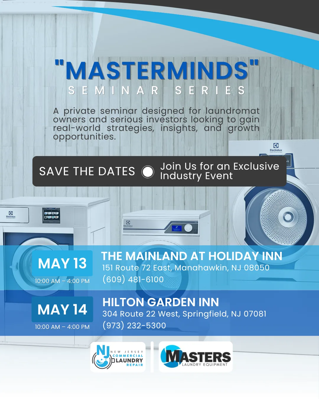 We’re hosting an exclusive “Masterminds” Seminar Series designed for laundromat owners and serious investors looking to gain real-world strategies, insights, and growth opportunities.
